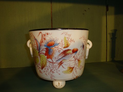 Fin gl. urtepotte skjuler på tre kugleben med flot fuglemotiv fra ca. 1890.