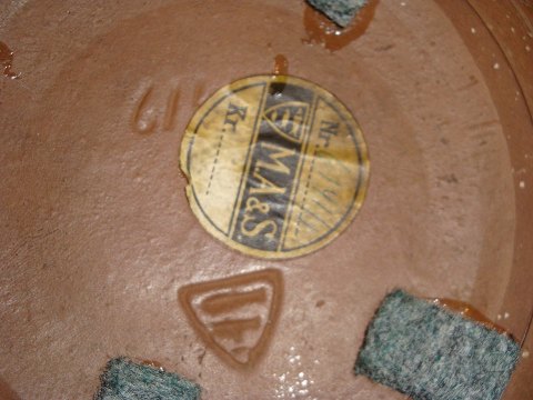 Beautiful dish in blue and brown colors Designed by Michael Andersen, Bornholm.