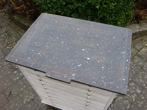 SolgtKommode med mange skuffer i gustavansk grå med flot sort top plade fra år ca 1830