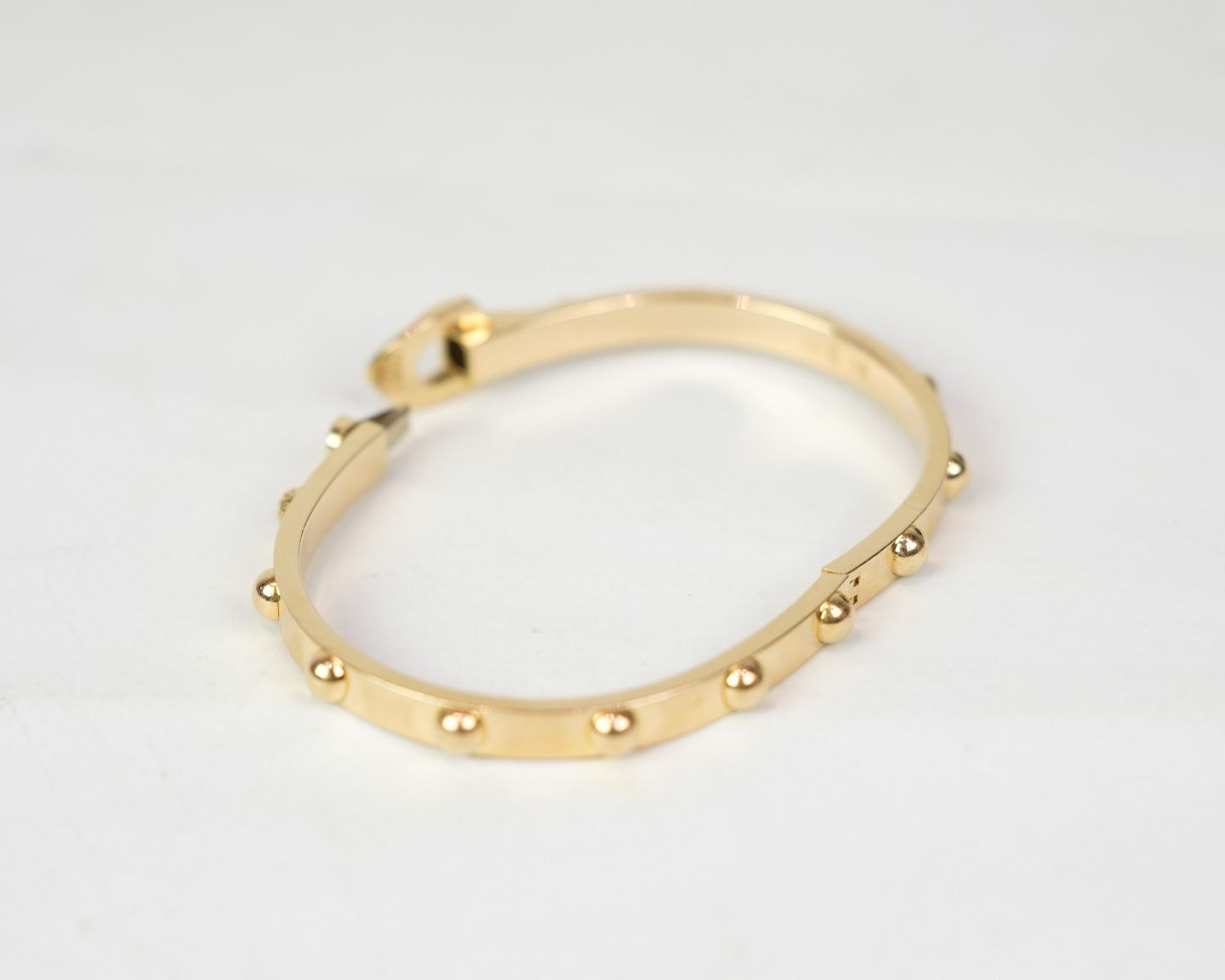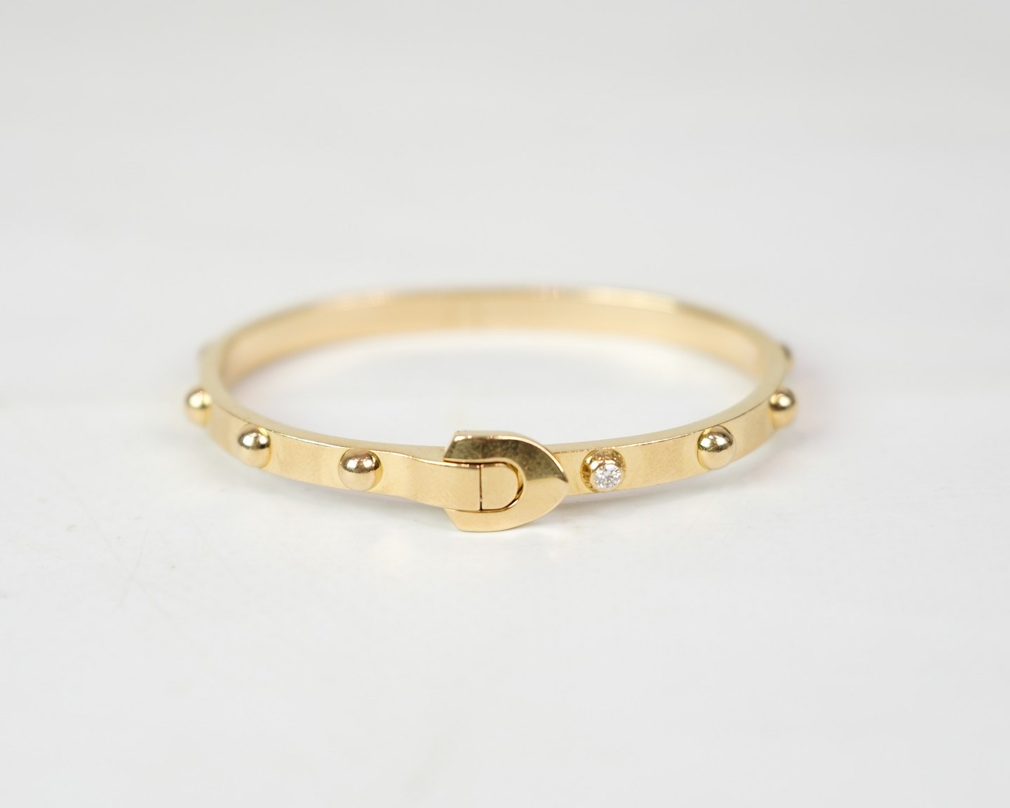 18 carat gold bracelet adorned with a diamond from Louis Vuitton made in France. The bracelet has 2 stamps 750 & 16, which indicate that the bracelet is made of 18 carat gold and the size.