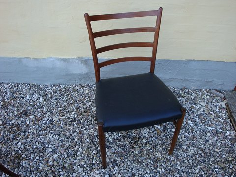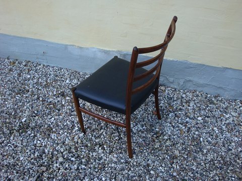 6 palisander stole med sort læder tegnet af N.O. Møller