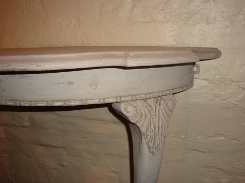 SoldHalf round console table from around the year 1920, painted grey.