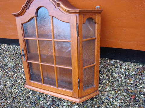 Hanging showcase year 1930 in oak with sloping sides and glass gauge B: 68 cm, H: 69 cm D: 19 cm 5000 m2 showroom