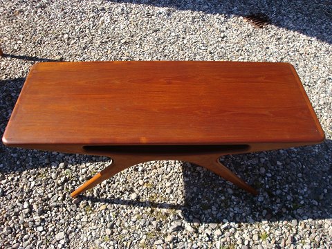Sofabord i teaktræ designet af Johannes Andersen lavet på Silkeborg møbelfabrik