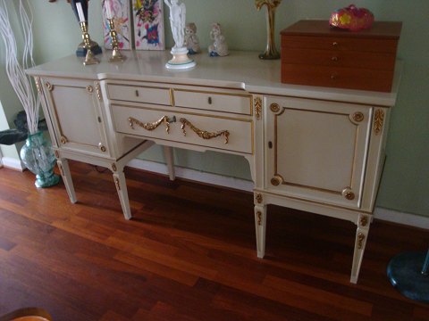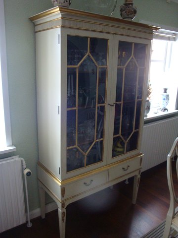 Heppelwhite dining room in white with 8 chairs and 3 leaves, Vetrine and pantry sideboard.