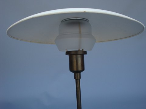 SoldLyfa Table Lamp with bronnen frame. The shade is painted white and of metal, socket of bakelite. The lamp is if danish Design from the 1930-1940s.