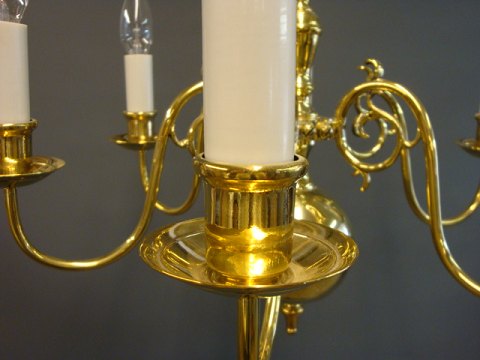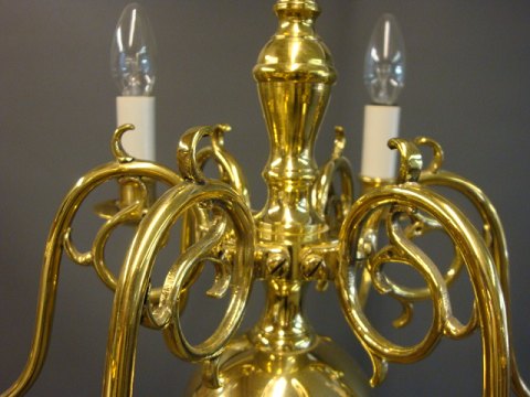 SoldChurch chandelier in brass from the Year 1910. The lamp has been renovated and in very good condition.