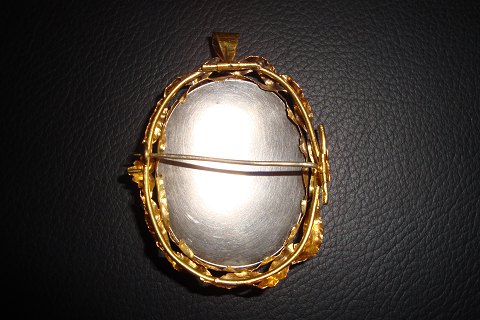pendant / brooch with black inner liner little pearl 5000 m2 showroom