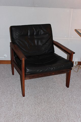A pair of rosewood armchairs with black leather from the 1960s. Designed by Illum Wikkelsø made by N.Ellersen 5000 show