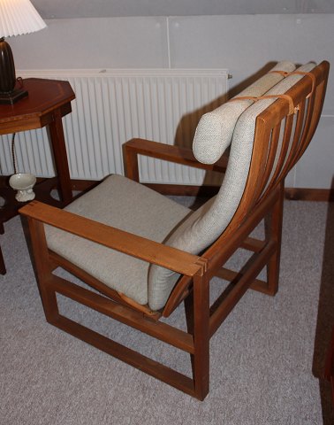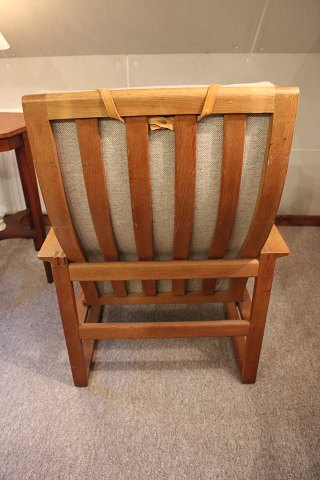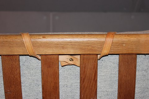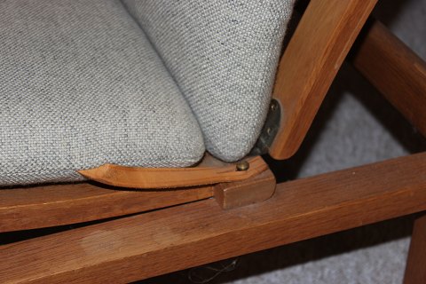 SoldLounge chair with stool designed by Borge Mogensen model 2254 sled chair tall model in light wool with loose cushions. Oak frame is in good condition. Dimensions, High 96 cm, W 66 cm, D 96th Seat height 36 cm