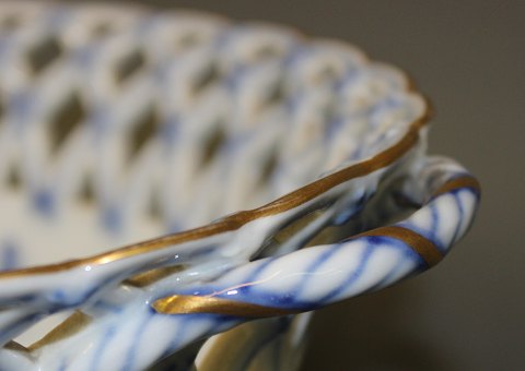 Lace pierced fluted oval bowl with gold very old from before 1923 in perfect condition height 5000 m2 showroom