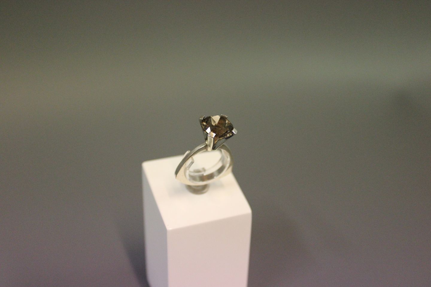 Sølvring 925s, design af From med stor flot røg quarts. Str. 54.