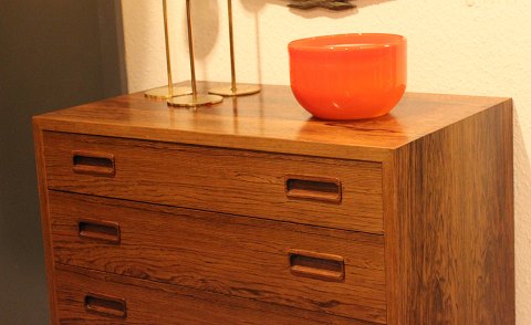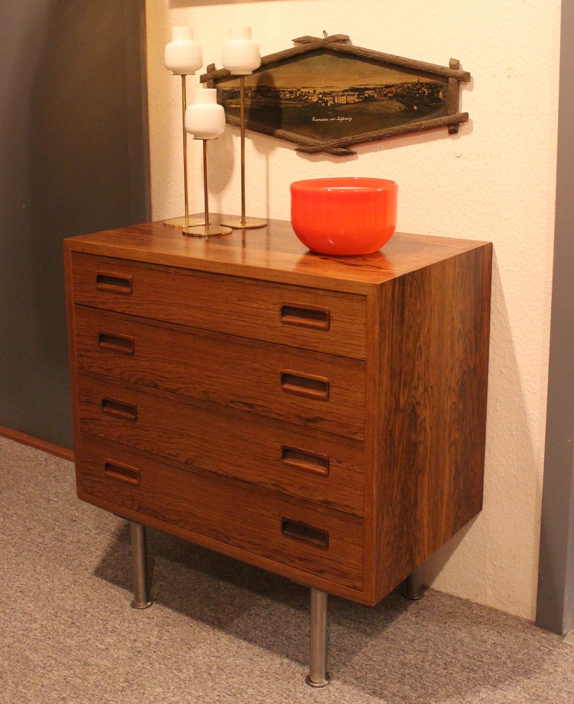 Small rosewood chest of drawers with steel legs. Danish design from the 1960s.