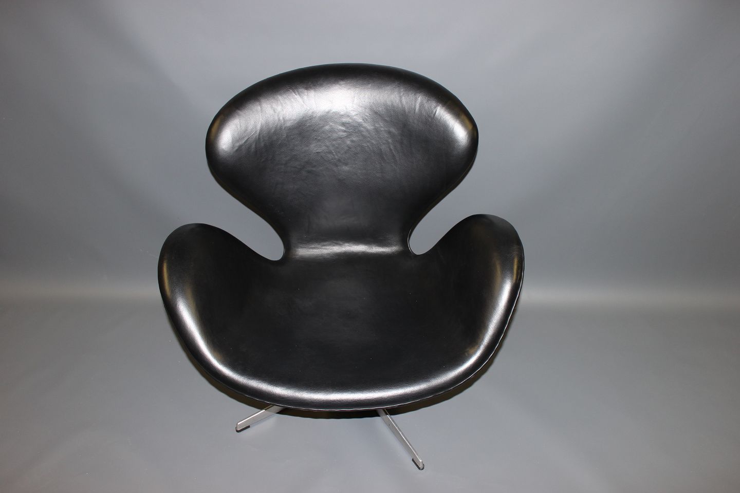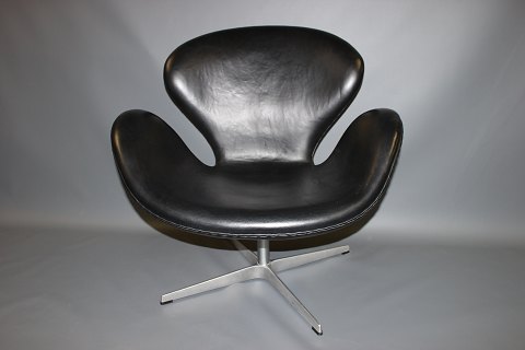 SoldRecliner model 3320 Swan chair designed by Arne Jacobsen with original black leather and plain turn has a great patina.