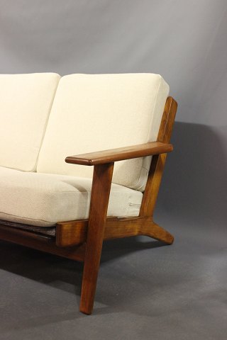 Tre-personers sofaen i teak, model GE 290, er et emblem af dansk modernisme og funktionalitet. Designet af Hans J. Wegner, en fremtrædende figur inden for dansk møbeldesign, afspejler denne sofa hans karakteristiske tilgang til enkelhed og håndværk.
