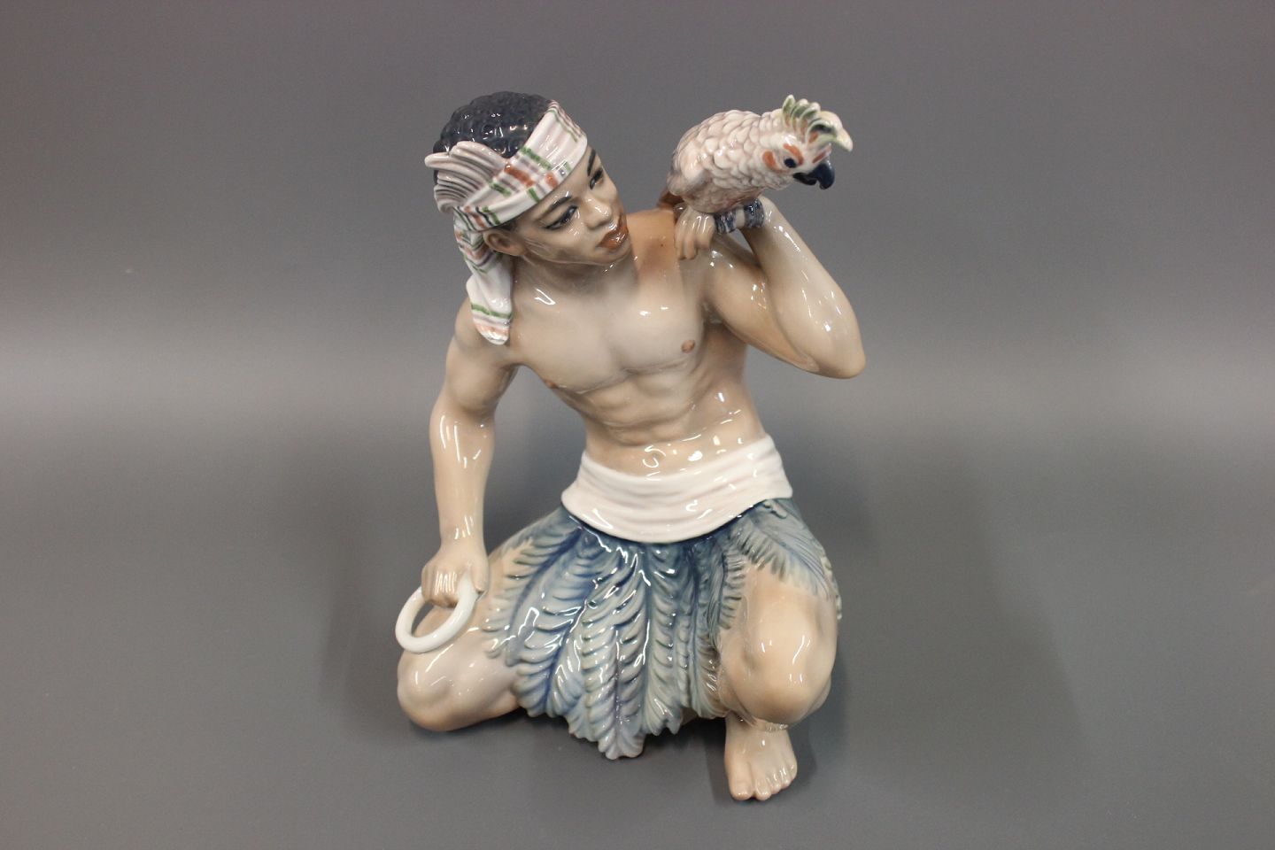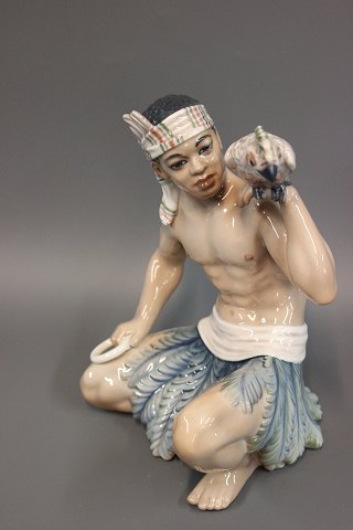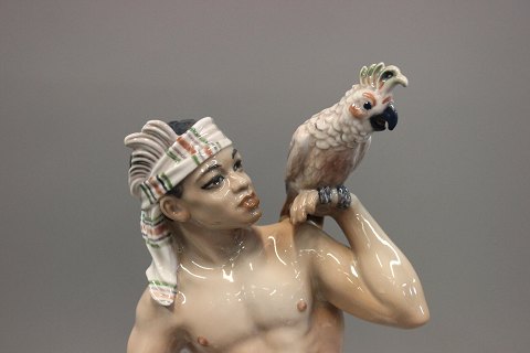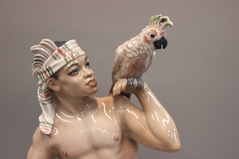 Oriental figurine by Dahl Jensen. No. 1305. Sudanese man with cockatoo. Height 23 cm.