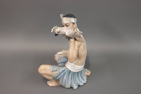 Oriental figurine by Dahl Jensen. No. 1305. Sudanese man with cockatoo. 5000 m2 showroom.