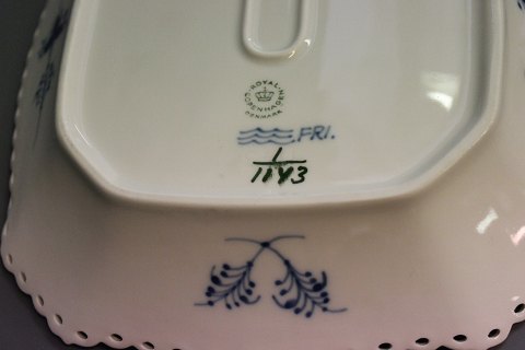 Royal Copenhagen blue fluted lace bread plate, made between 1969 and 1973, no. 1143.