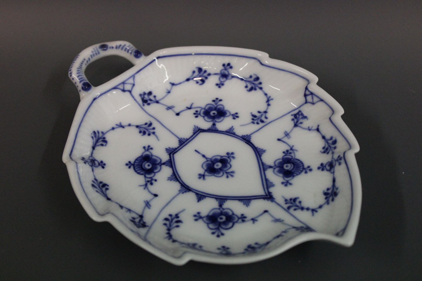 Royal Copenhagen musselmalet blad formet kagefad, nr. 143.
