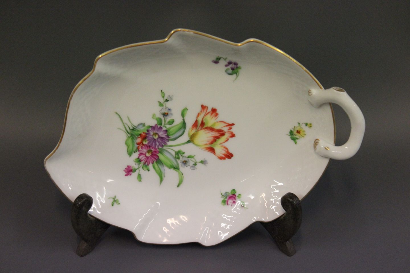 B&G saksisk blomst. Bladformet fad som er lavet mellem 1915 og 1947.