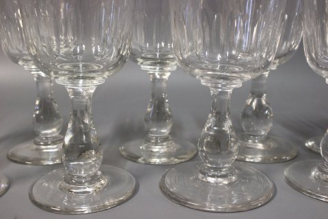 Nine wine glass with polished patterns from 1880 and Holmegaard, in good condition.