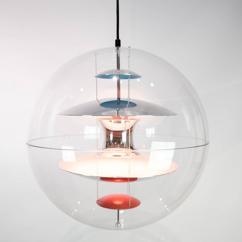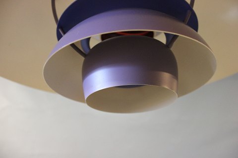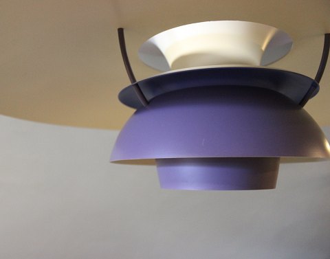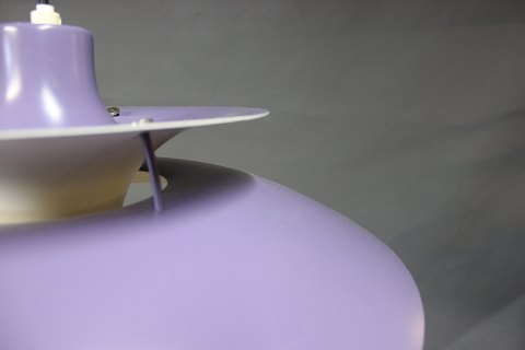 PH5 lampe designet af Poul Henningsen i 1958 og produceret af Louis Poulsen. Lampen har lilla lakerede metal skærme.