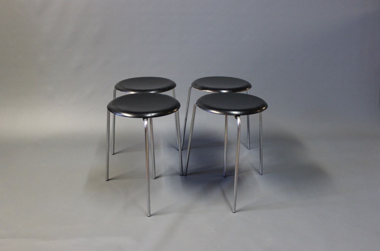 Sold4 Dot, Model 3107, stools designed by Arne Jacobsen in the 1950s in collaboration with and manufactured by Fritz Hansen in the late 1960s.