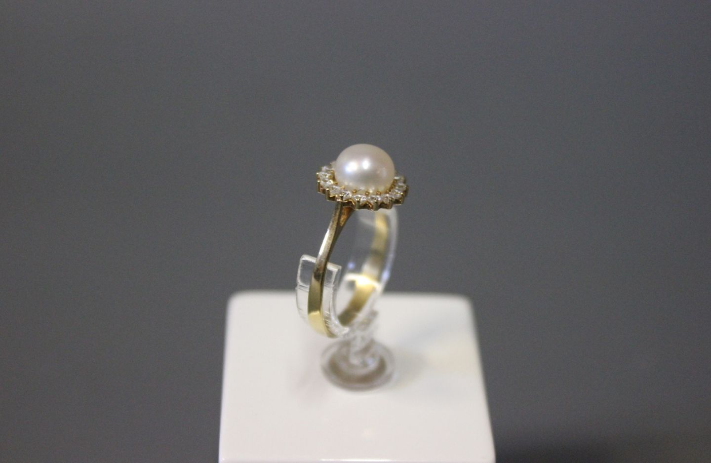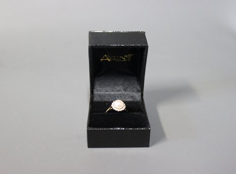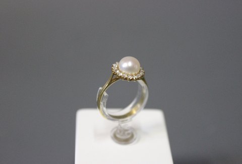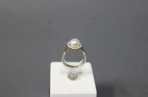 SoldRing in 14 ct. gold with zircons and a freshwater Pearl.
