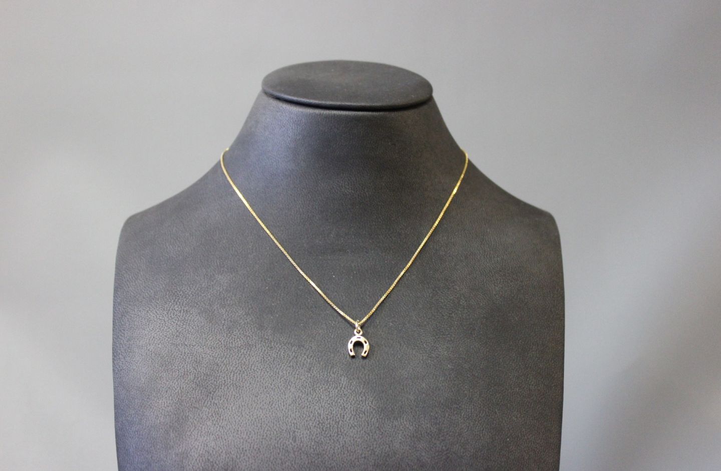 Chain with pendant in 8 ct. gold shaped as a horse's shoe, gilded 925 sterling silver chain. Stamped B.E.E.