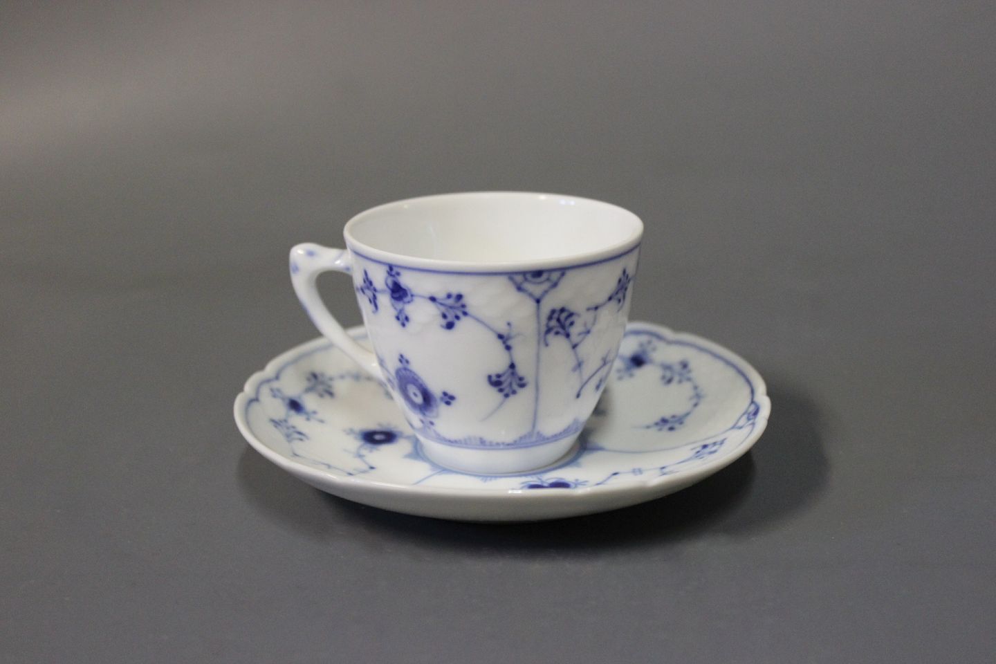 B&G musselmalet/blåmalet mokkakop samt under underkop, #1083.