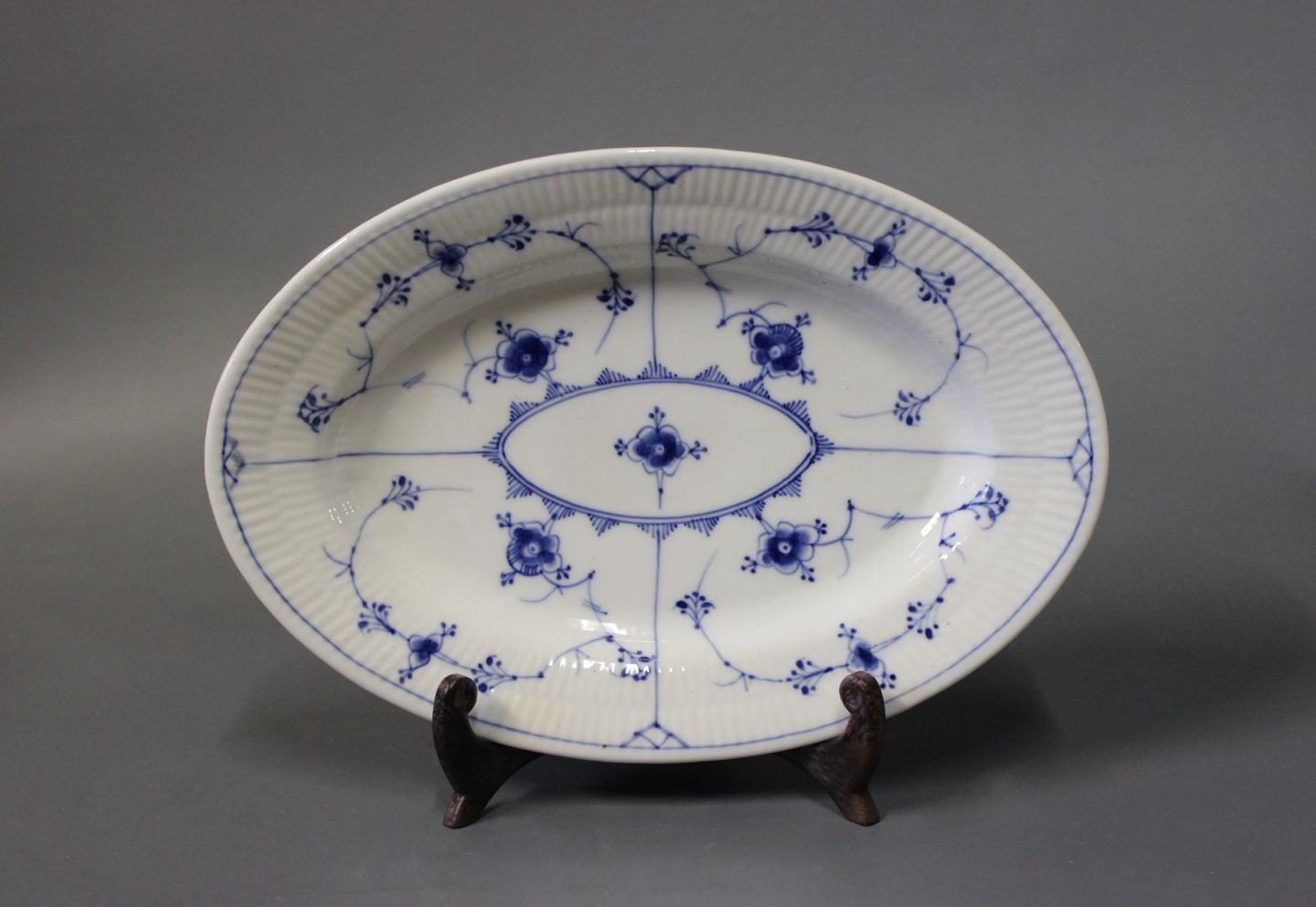 B&G musselmalet/blåmalet riflet mellem størrelse ovalt fad, #12.