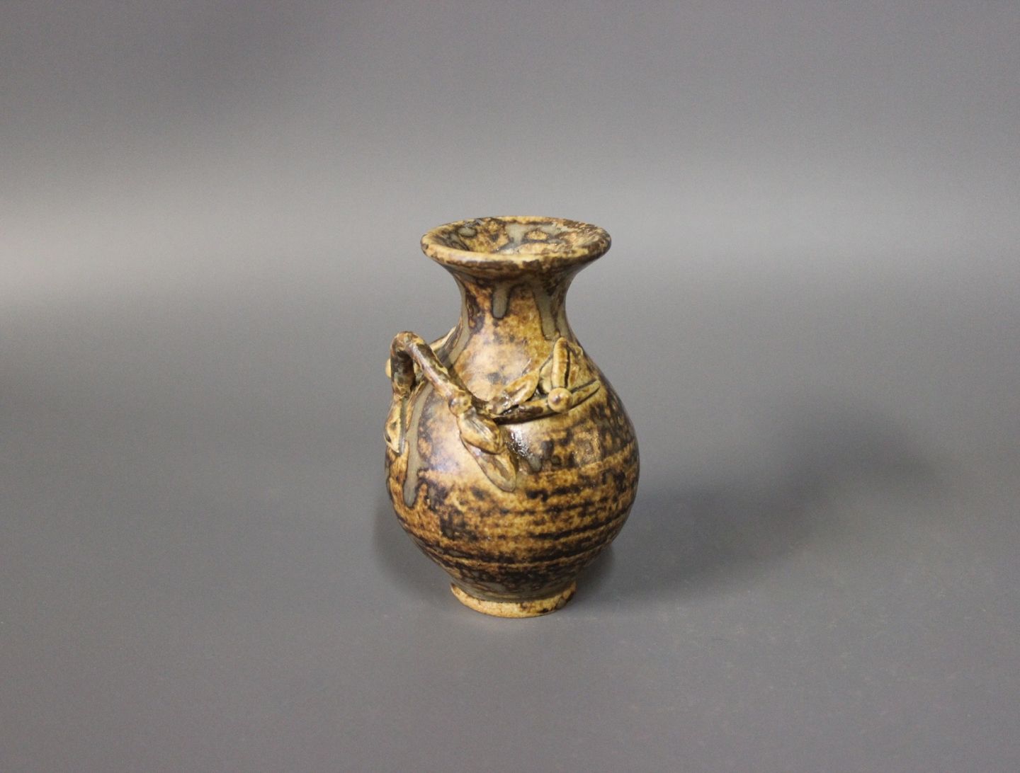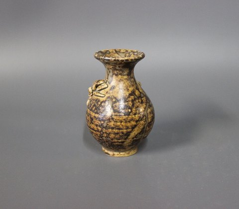 SoldSmall ceramic vase in Brown colors by Arne Bang, no.124.
