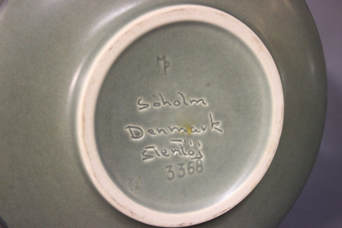 Large low bowl in green colors by Søholm Denmark.