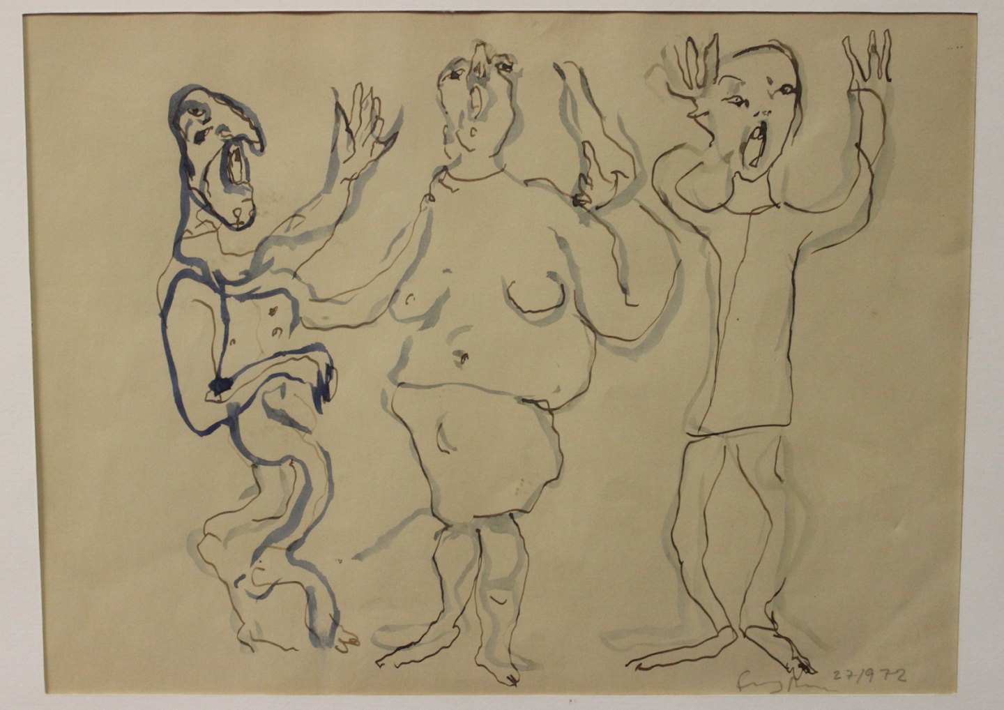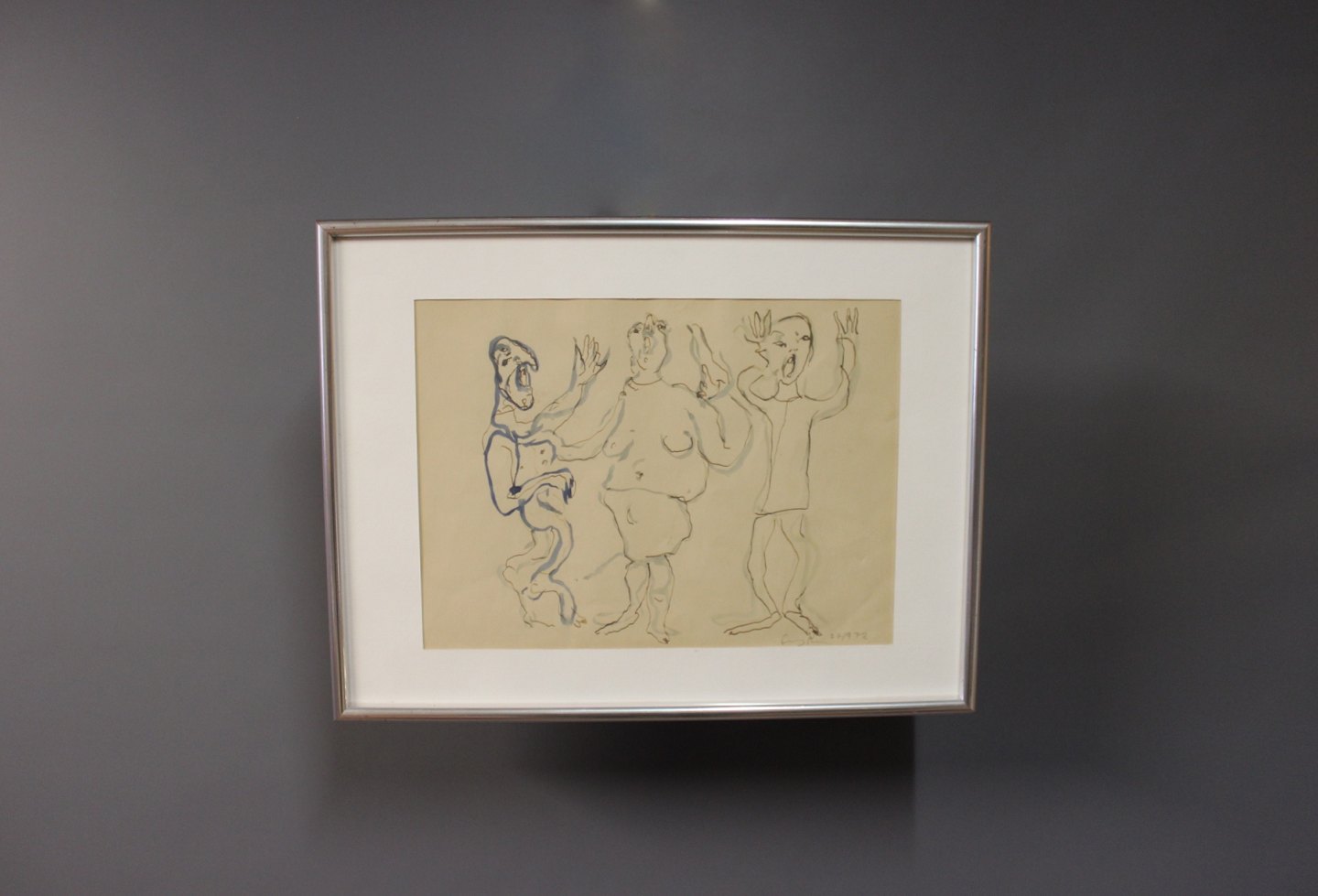 Simpel tegning af tre skikkelser med ukendt signatur fra 2/7-1972.