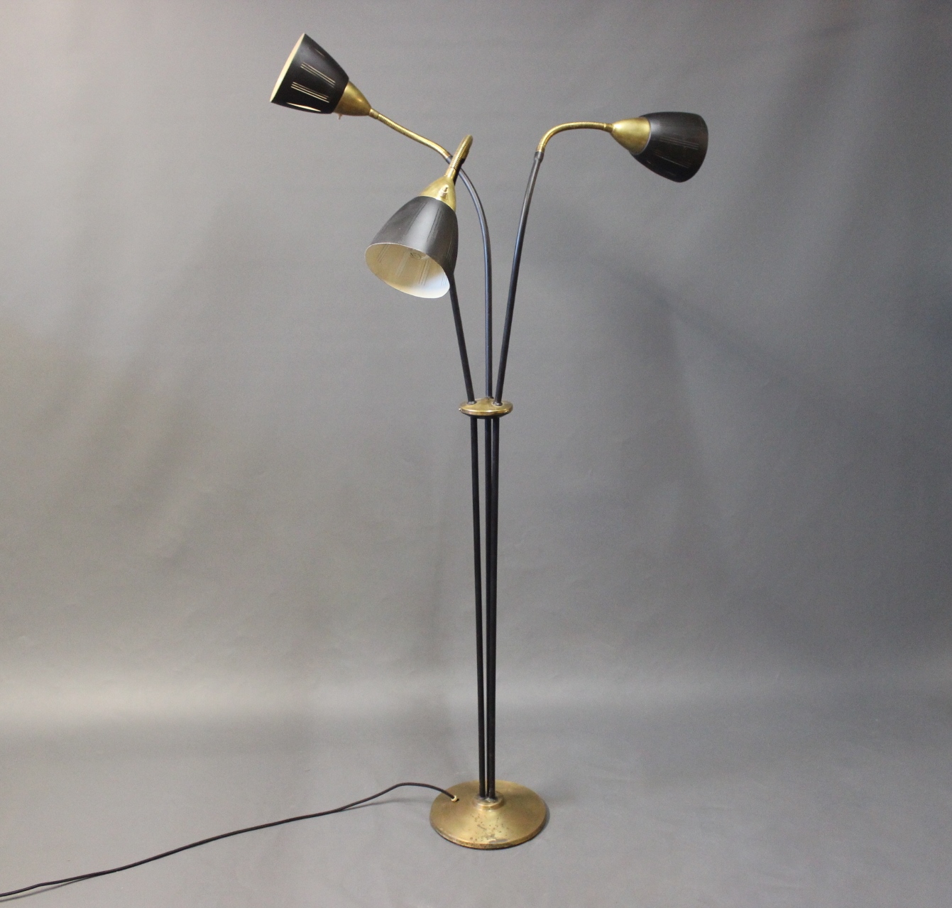 SolgtTrearmet sort gulvlampe i messing af ukendt design fra omkring 1930-40erne.