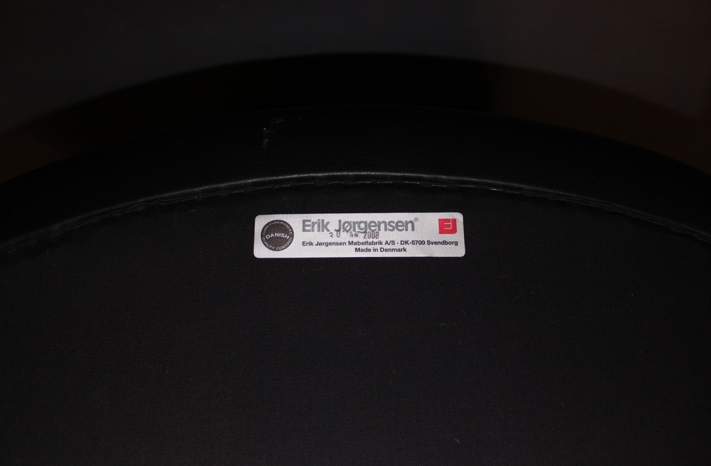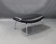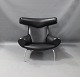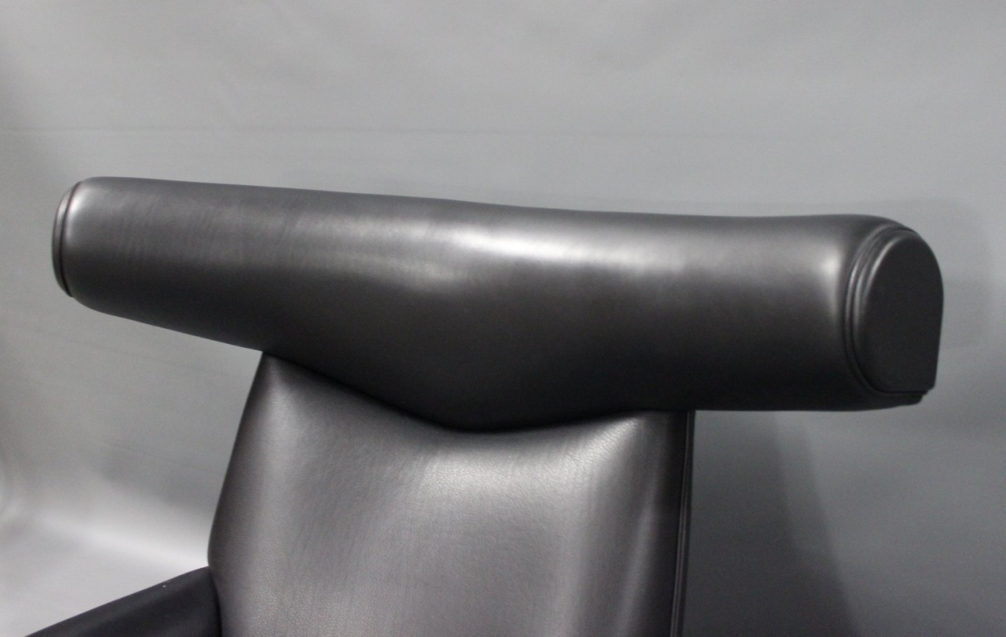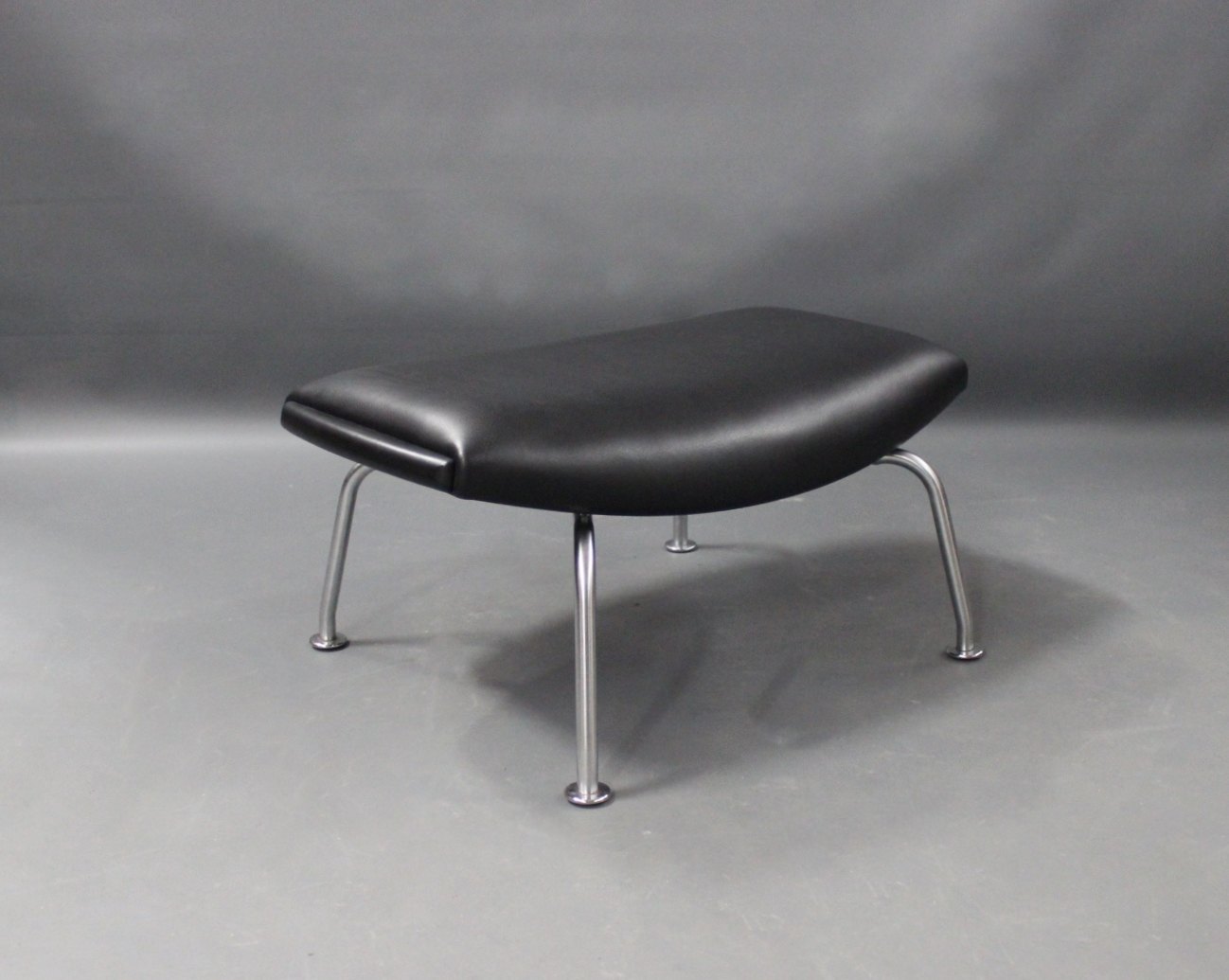 The Ox Chair, model EJ 100 and stool model EJ 100-F, upholstered in Black leather, designed by Hans J. Wegner in the 1960s and manufactured at Erik Jørgensen furniture factory the 20th of January 2008.