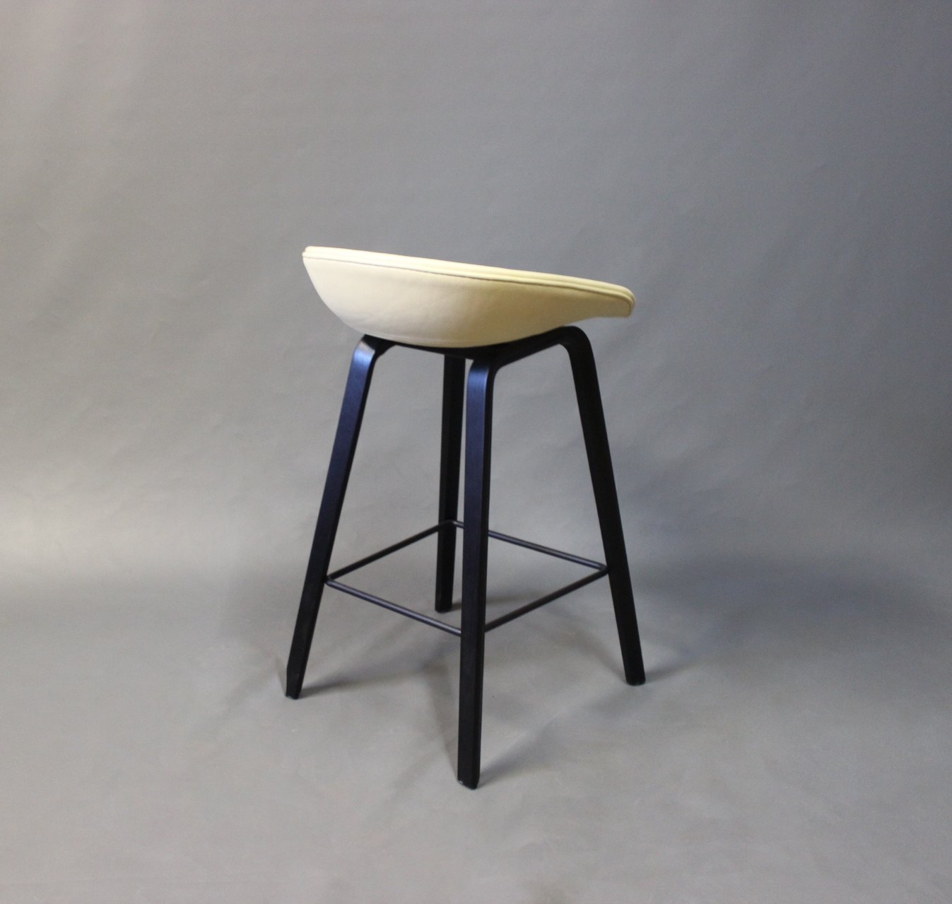 SoldA pair of barstools "About a Stool" ASS32 designed by HAY in 2010. These are newly upholstered with Classic yellow leather and legs of Black polished Wood. We have 1 left.