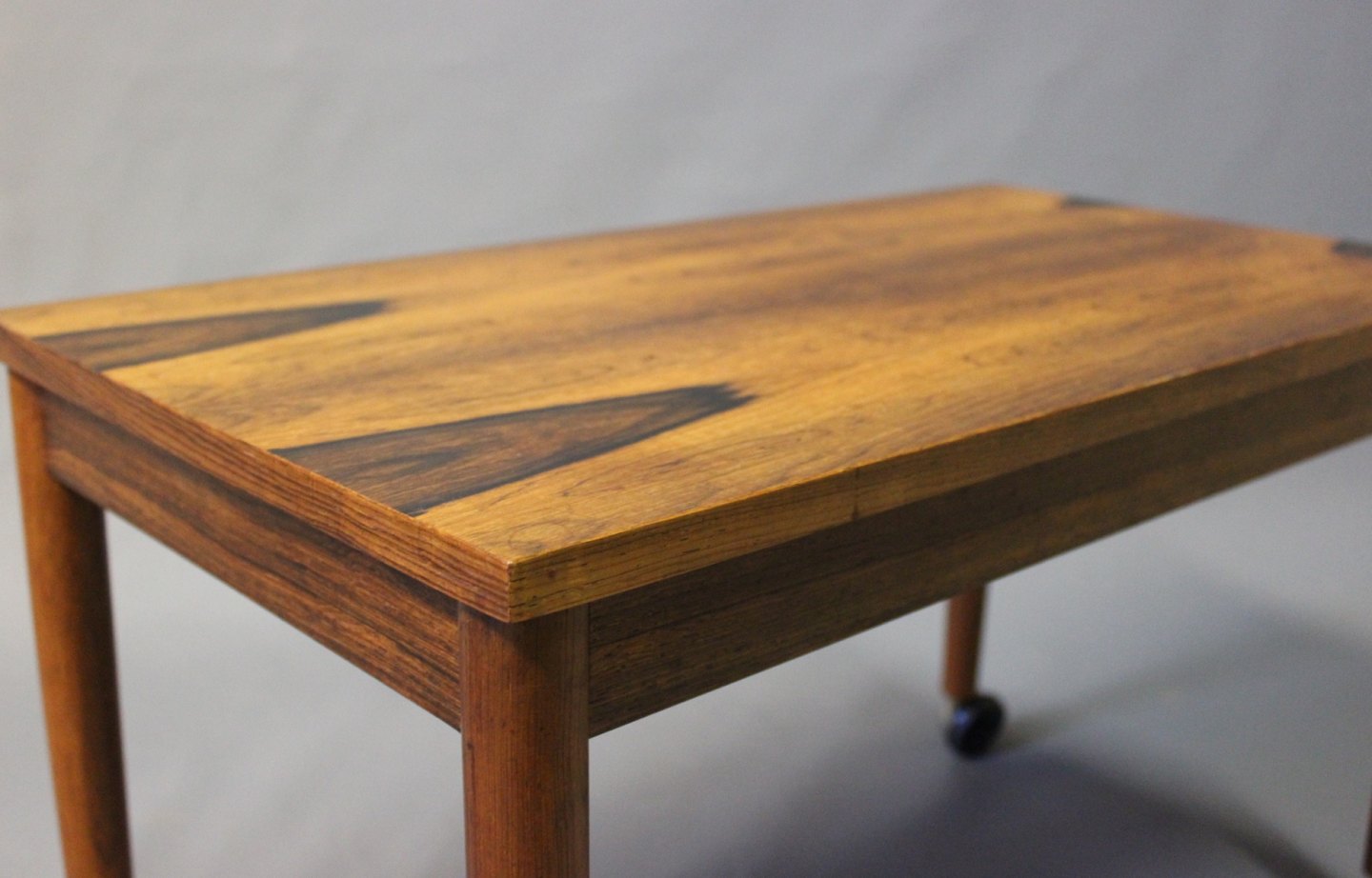 SoldSmall table on Wheels in rosewood of Danish Design from the 1960s.