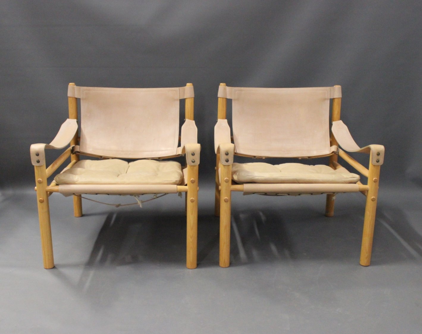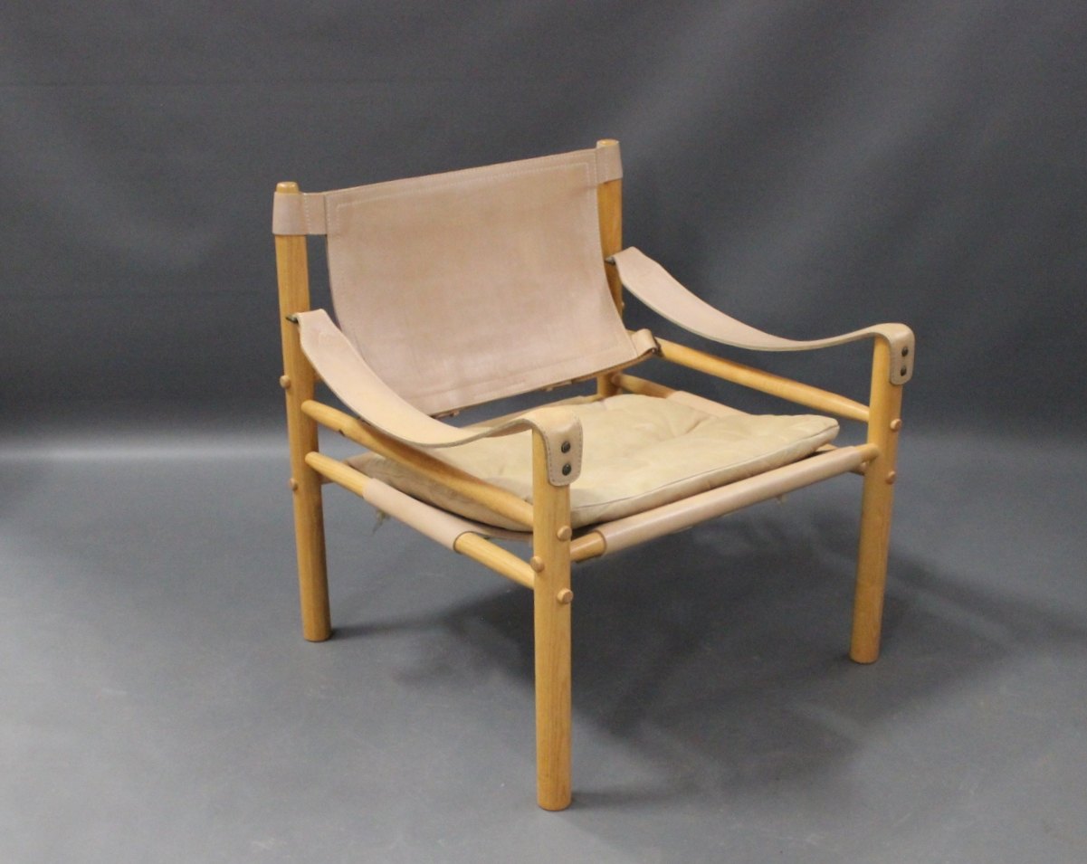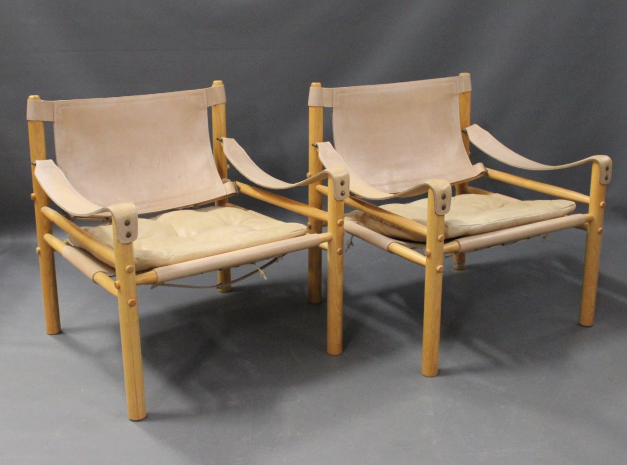 SoldA pair of Scirocco Safari chairs by Arne Norell and Aneby Furniture from the 1960s. The chairs are of light ash and nature leather.