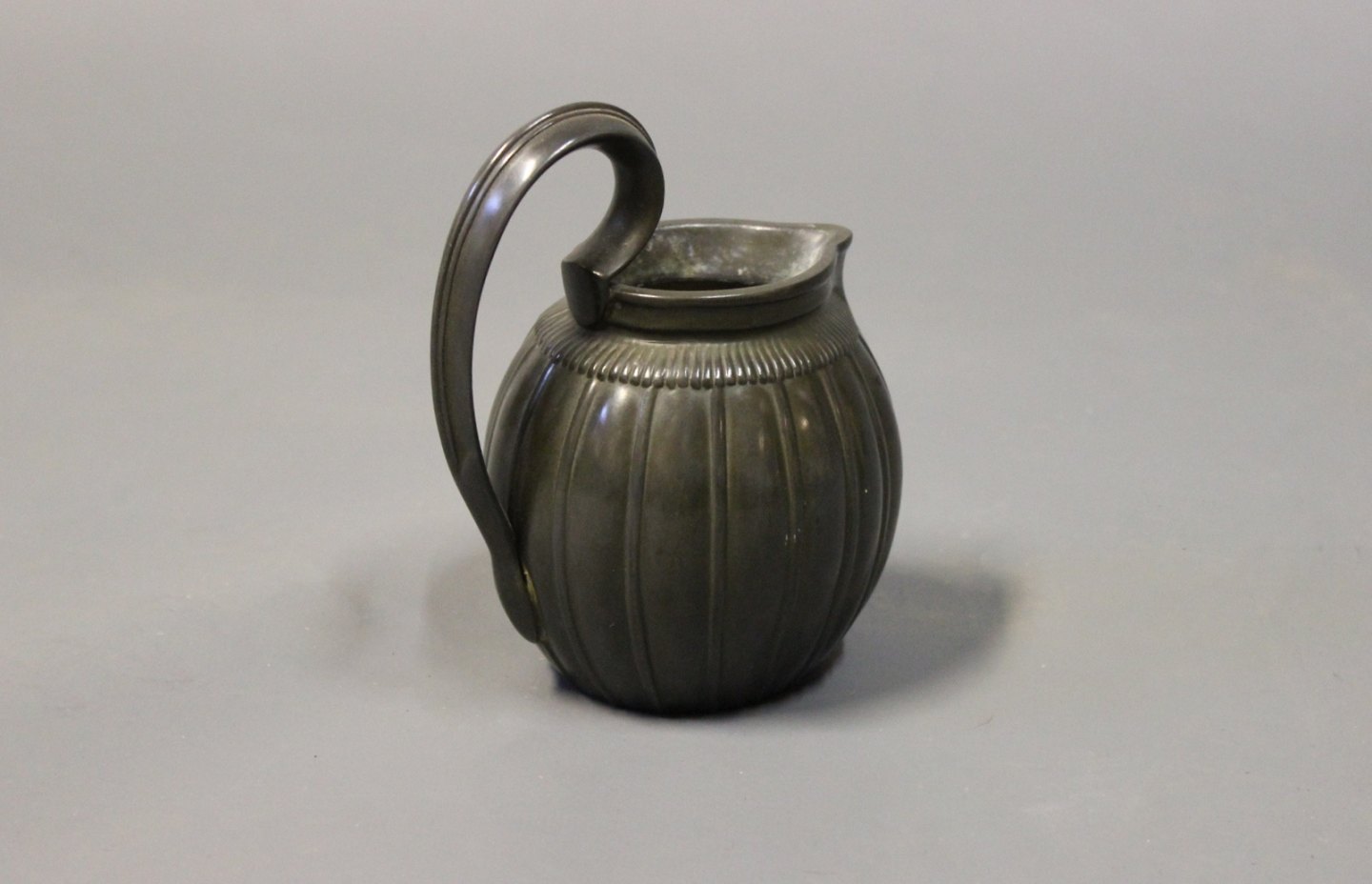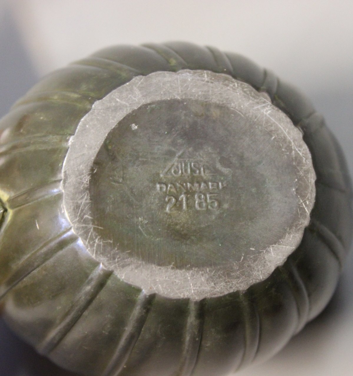 Lille kande med hank fremstillet i disko metal af Just Andersen. Kanden er nummereret 2185.