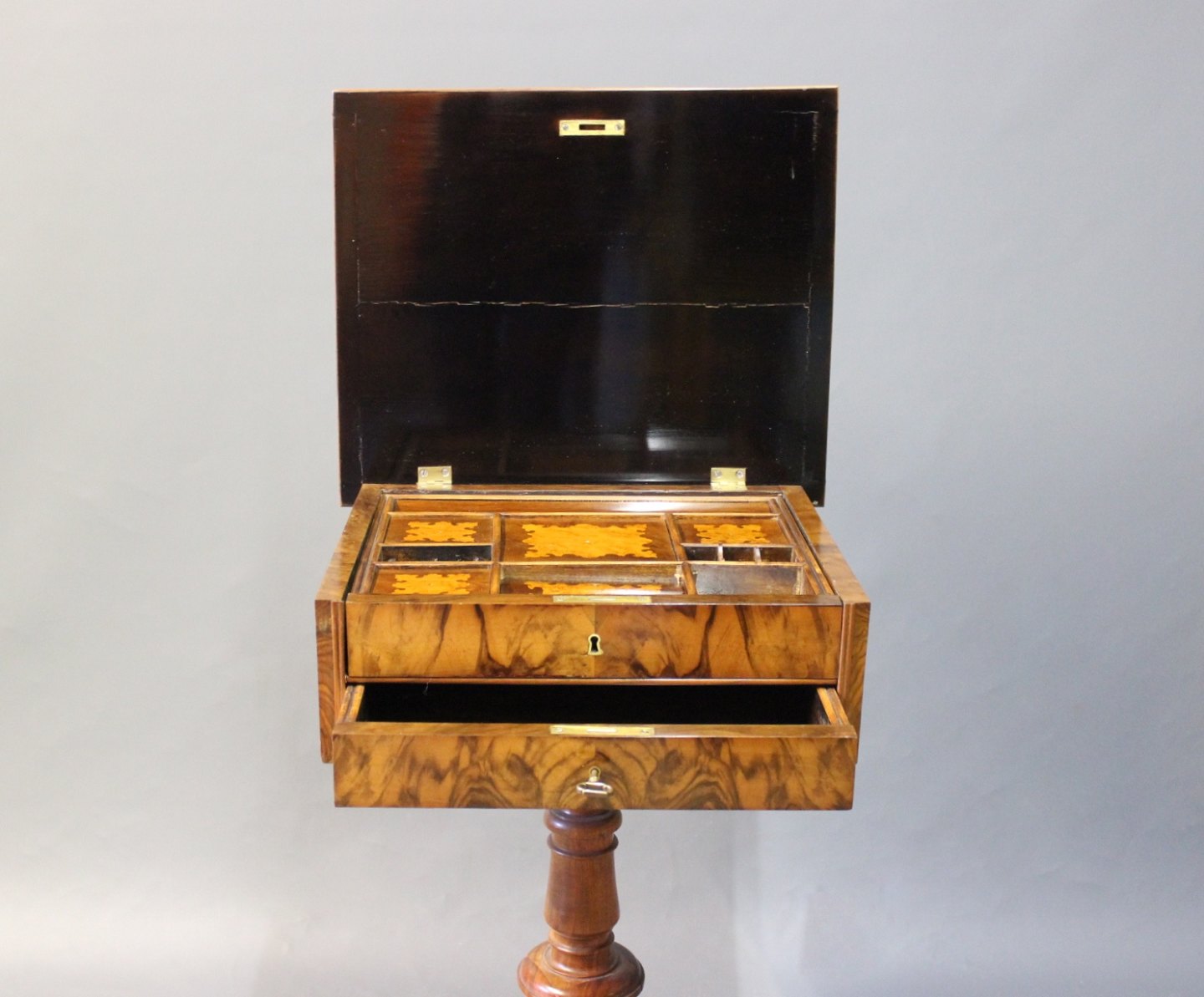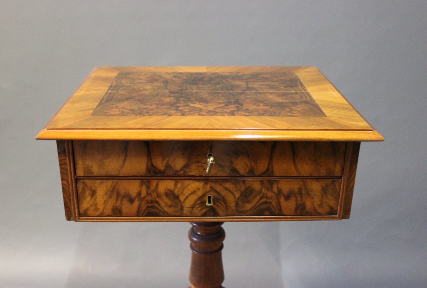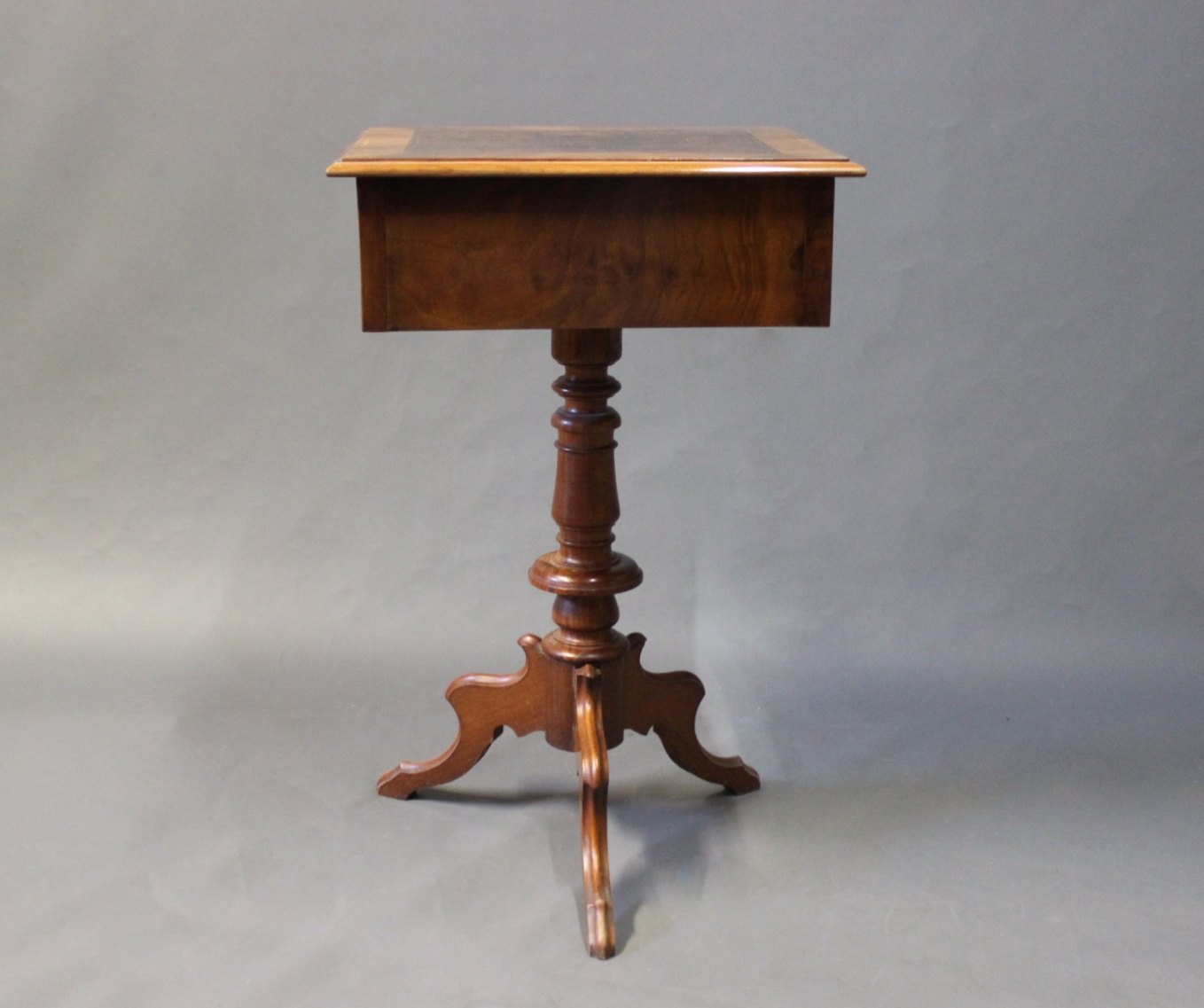 Antique sewing table in hand polished walnut with inlaid Wood from 1860.