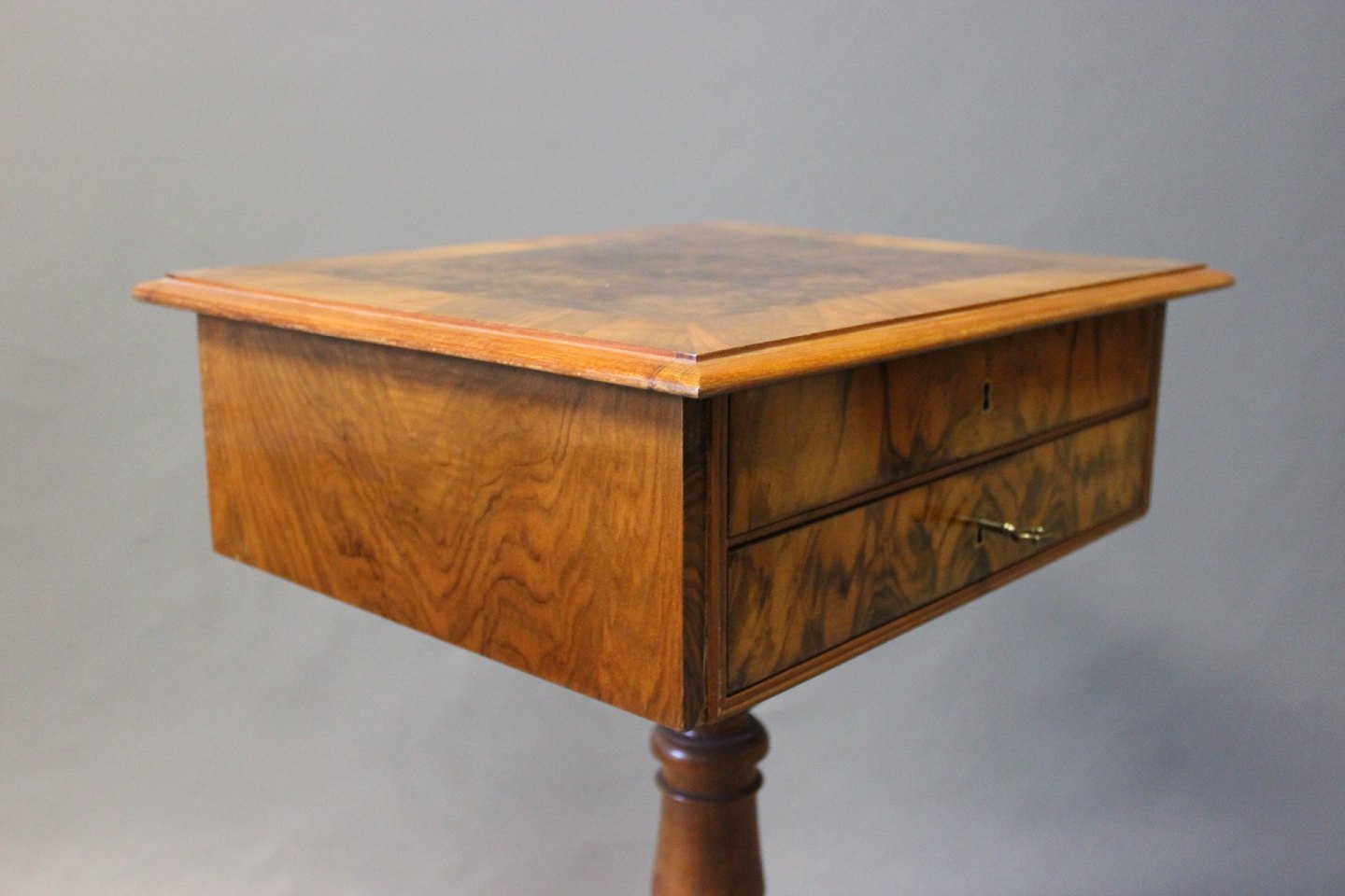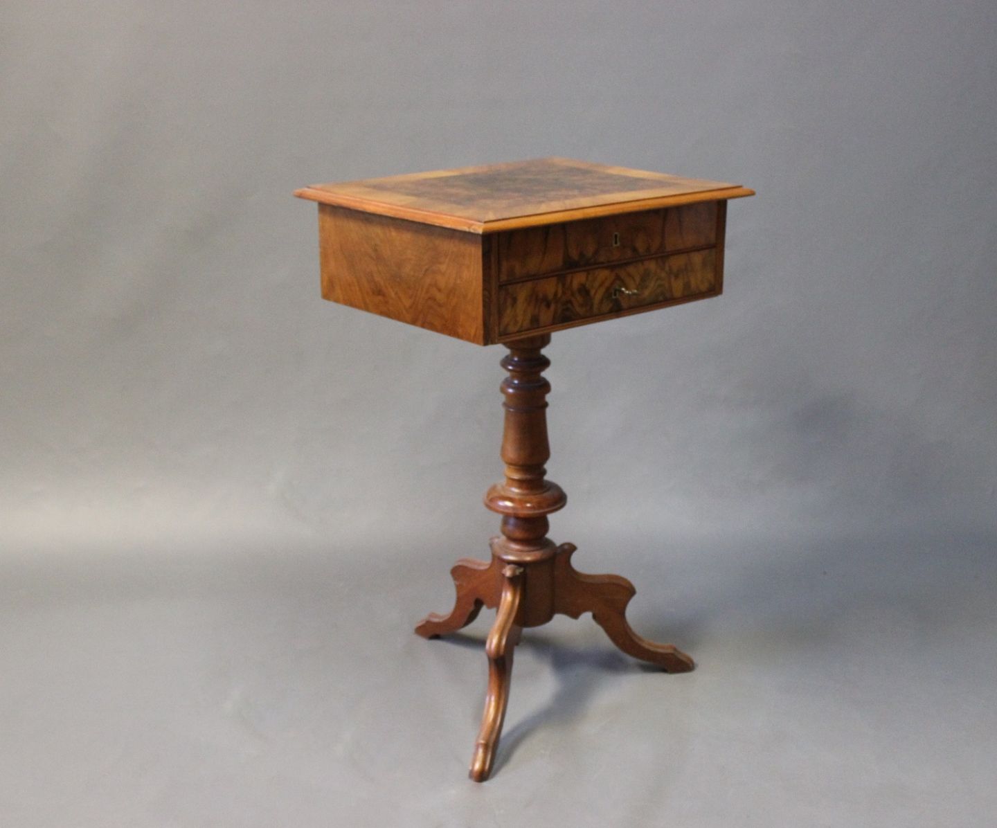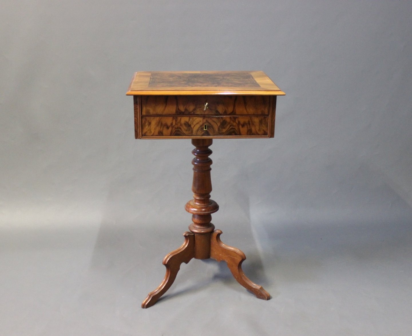 Antique sewing table in hand polished walnut with inlaid Wood from 1860.