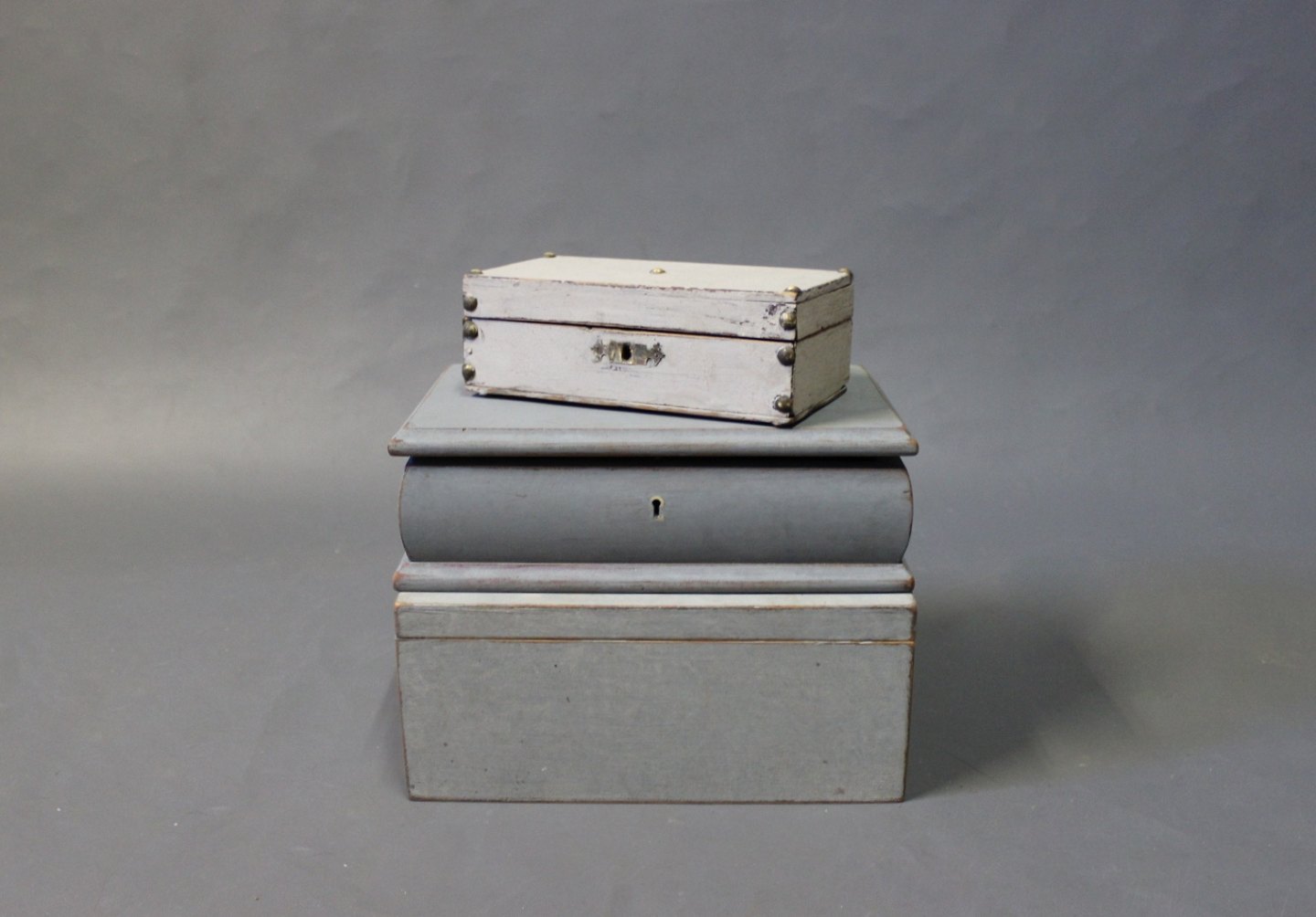 SoldA set of 3 grey painted shrines from the year 1880 to 1930 all in the style of Gustavian.