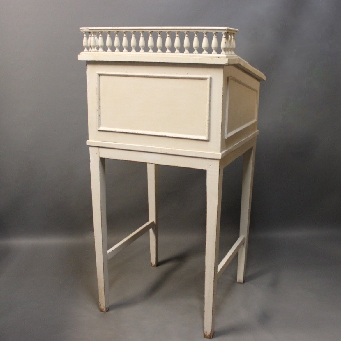 Grey painted writing desk in the style Gustavian from the 1840s. The desk is freestanding and stamped with "Nordisk Films Kompagni".