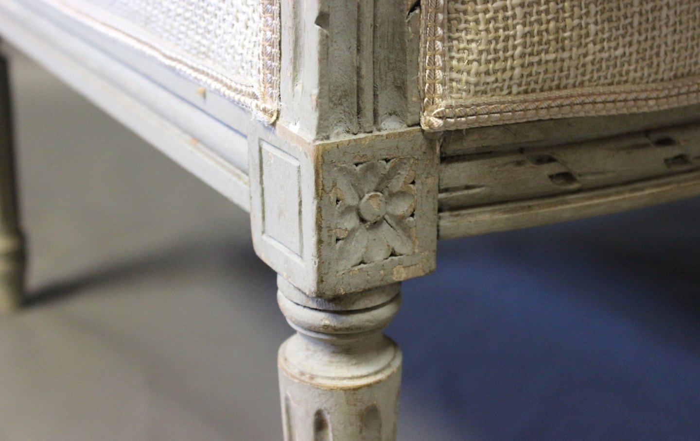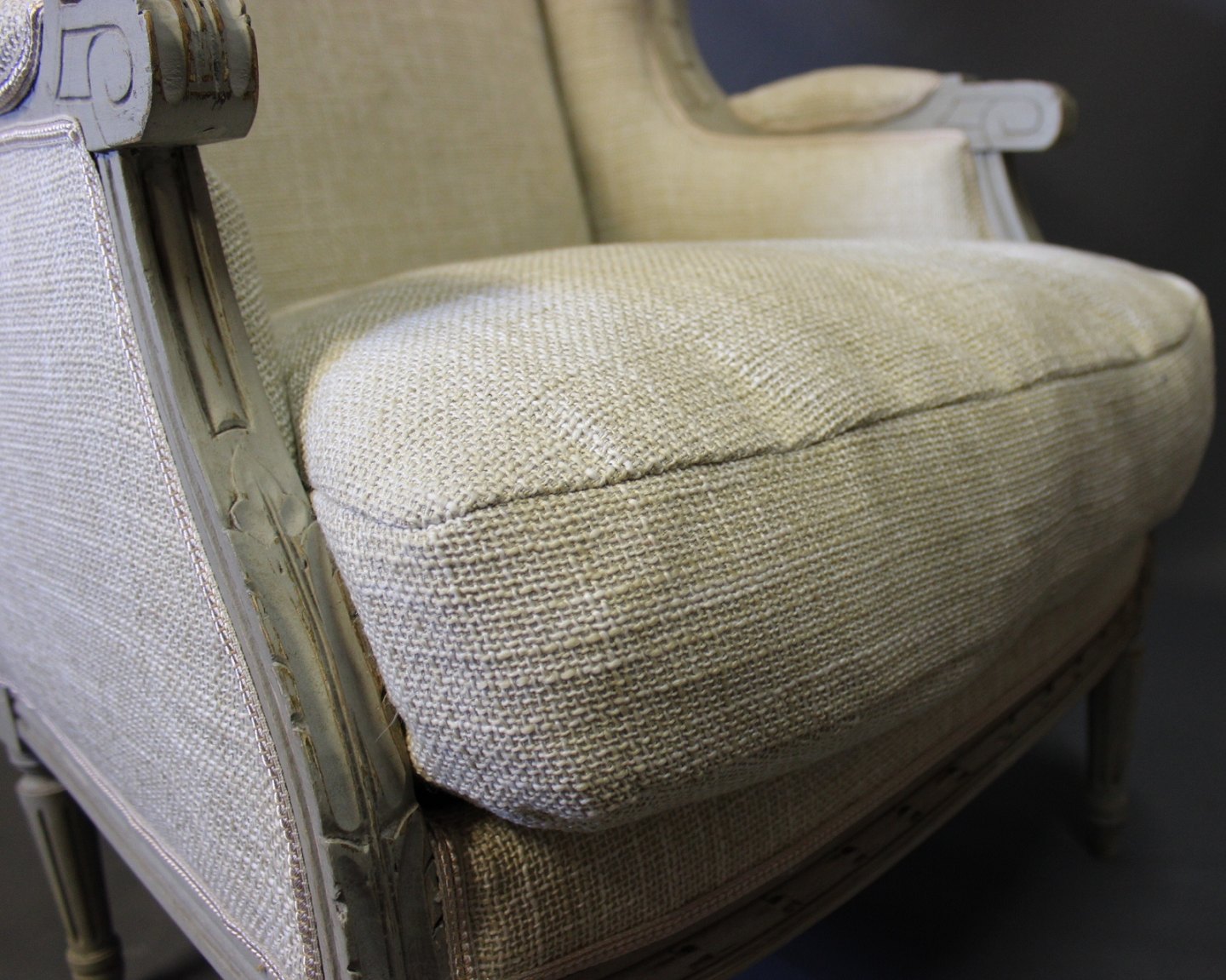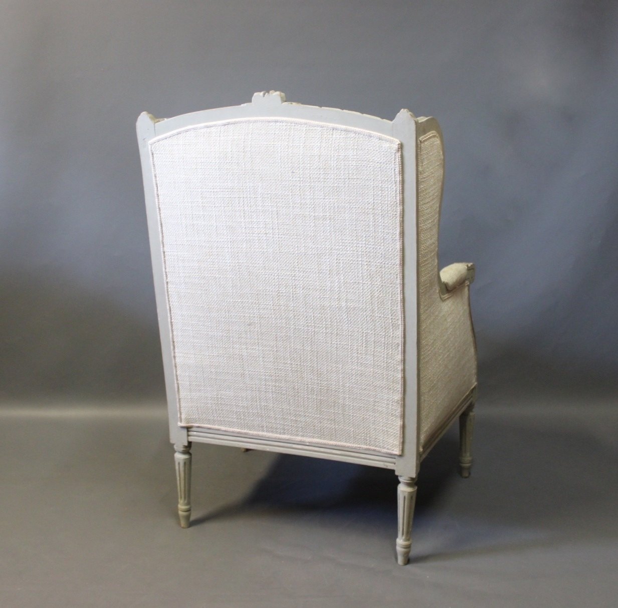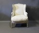 A pair of grey painted Gustavian armchairs from the 1830s.