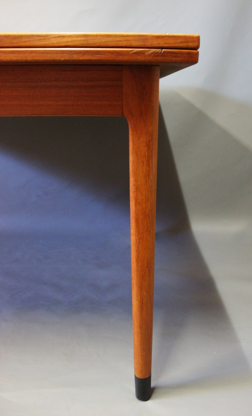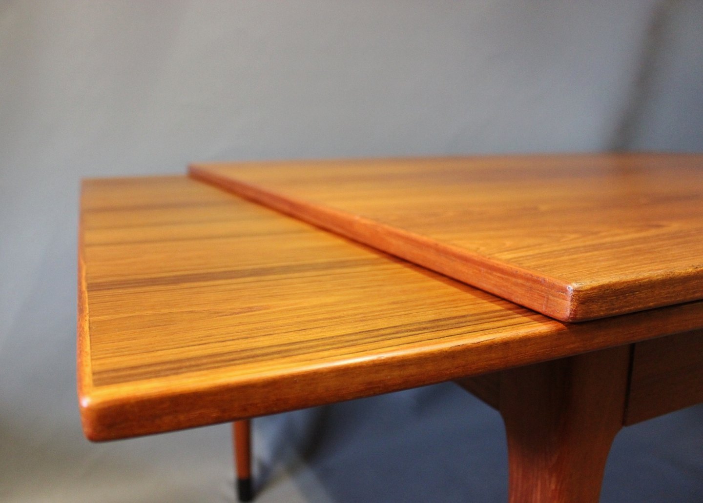 SolgtSpisebord i teak med ibenholt og 2 udtræksplader designet af N.O. Møller og fremstillet af J.L. Møller i 1960erne. Bordet er rigtig flot brugt stand.