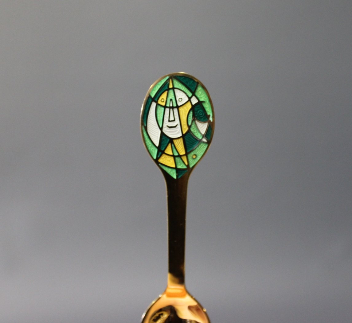 A. Michelsen christmas coffeespoon and christmas cakefork, The Mask - 1980 by Egill Jacobsen.