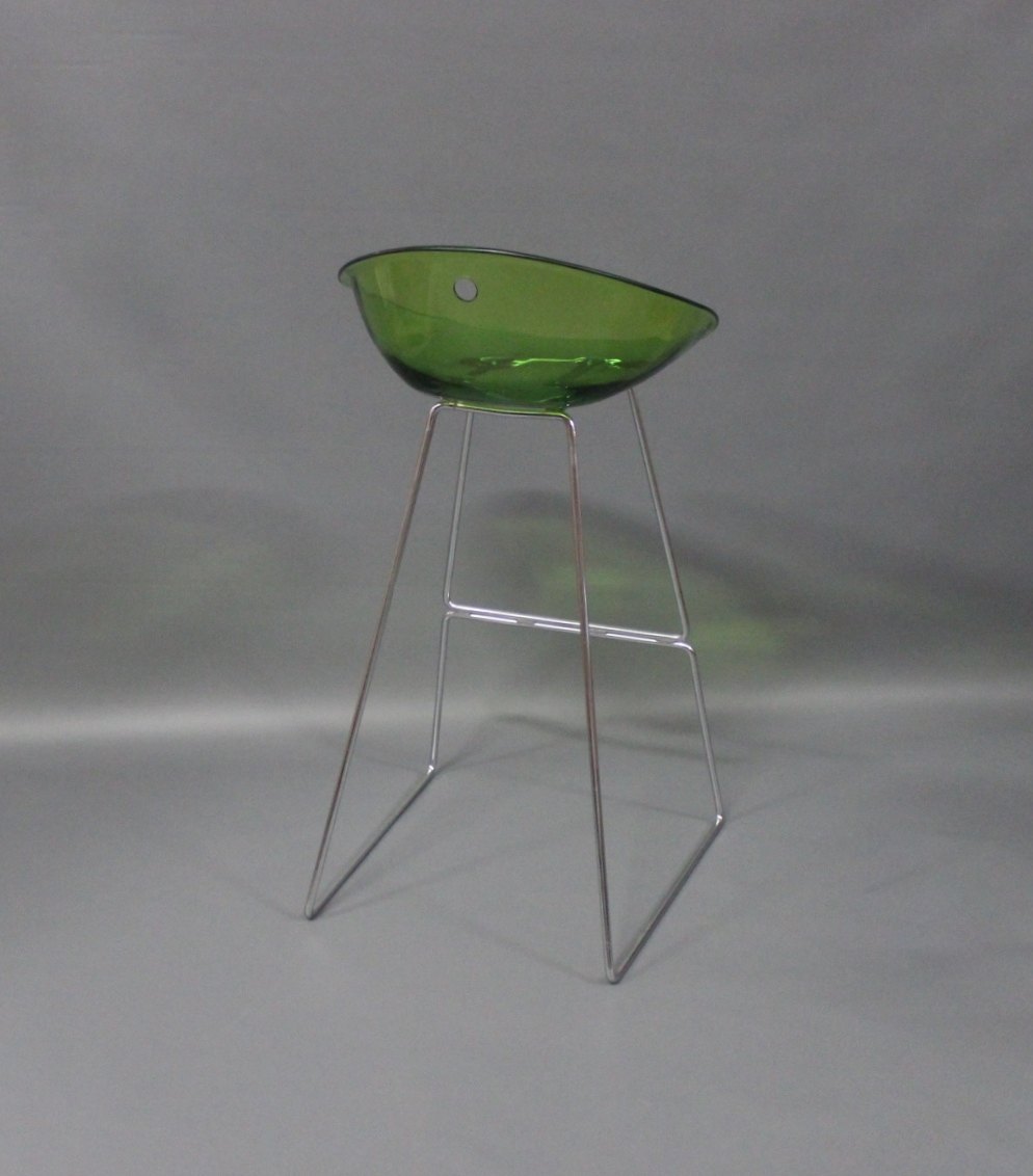 SoldA pair of green Pedrali, 906, Gliss barstools designed by Claudio Dondoli and Marco Pocci. The stools are of Italian design, with an acryllic shell and frame of chrome.