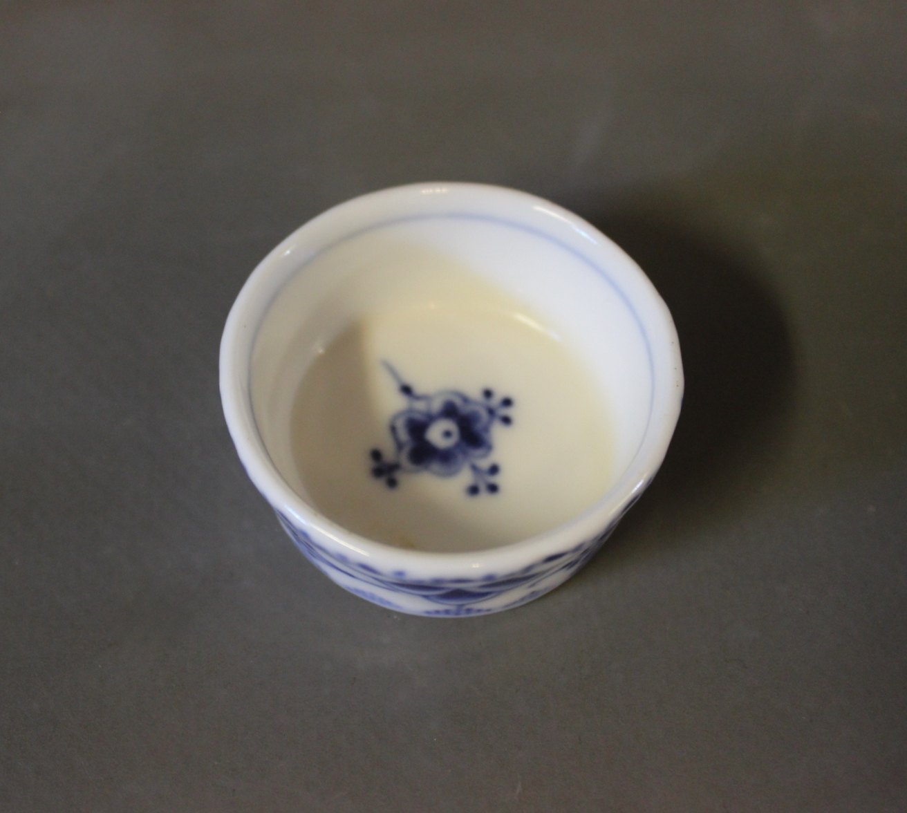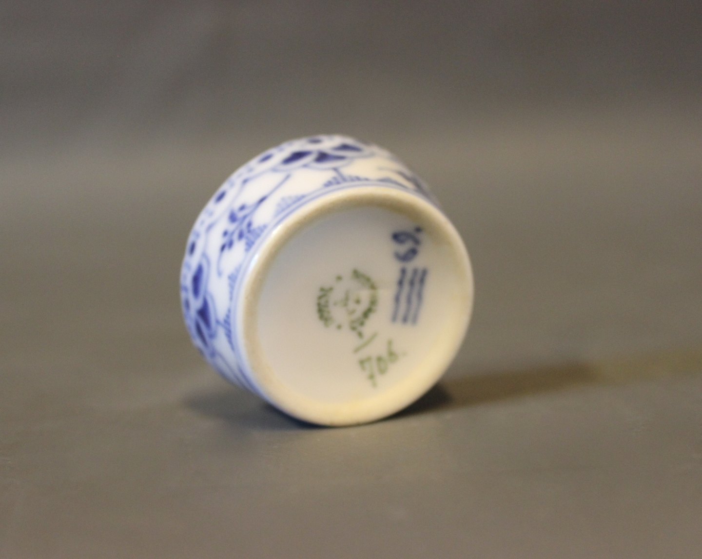 SolgtKgl. musselmalet halvblonde saltkar, nr.: 1/706.