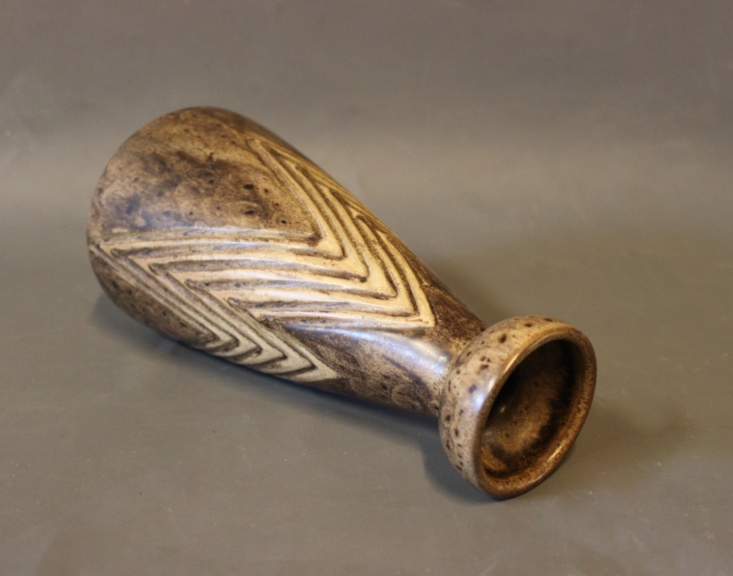 SoldVase By "Løvemose" in brown colours and light pattern.